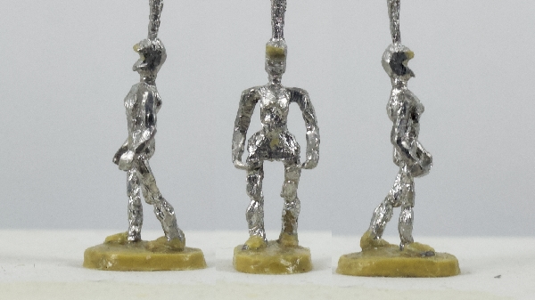 So here is the new base doll for all marching poses. The doll base is thicker than before, because I constantly have problems casting the previous thin bases. The step of the figure is shorter to bring the legs closer together. The scale of the figure is 16mm, which corresponds to a 170cm tall person in 1:100 scale. When further multiplying to get special dolls and final products, scale creep increases this to 17-18mm. But no abnormal giants anymore, I hope.